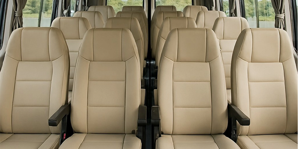 With 18 wide seats and enough leg space, this vehicle ensures comfort for long trips with ease of movement throughout the cabin.