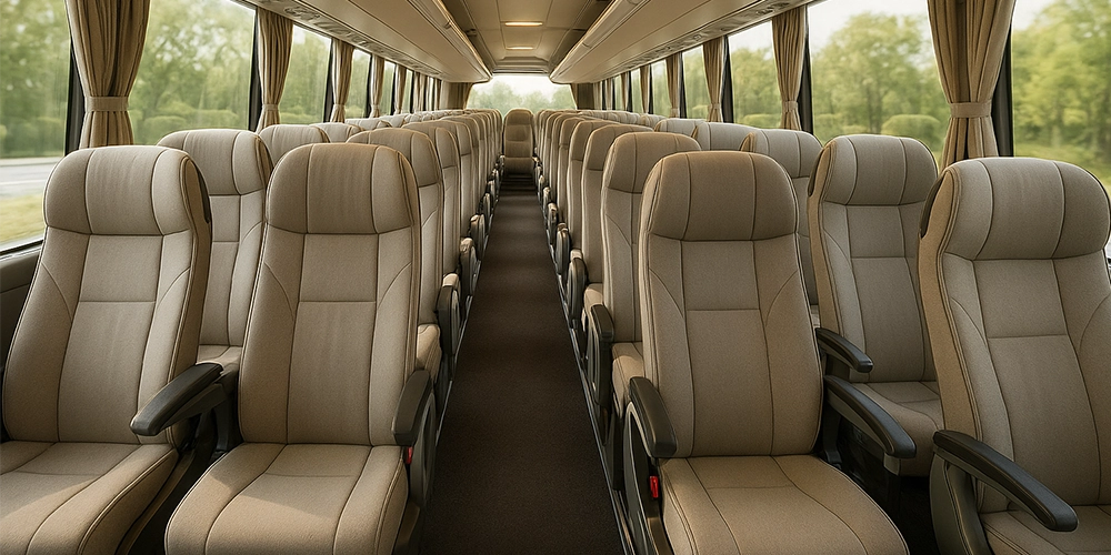Groups planning quick outs or festival trips can trust this coach for safe and air-conditioned travel.