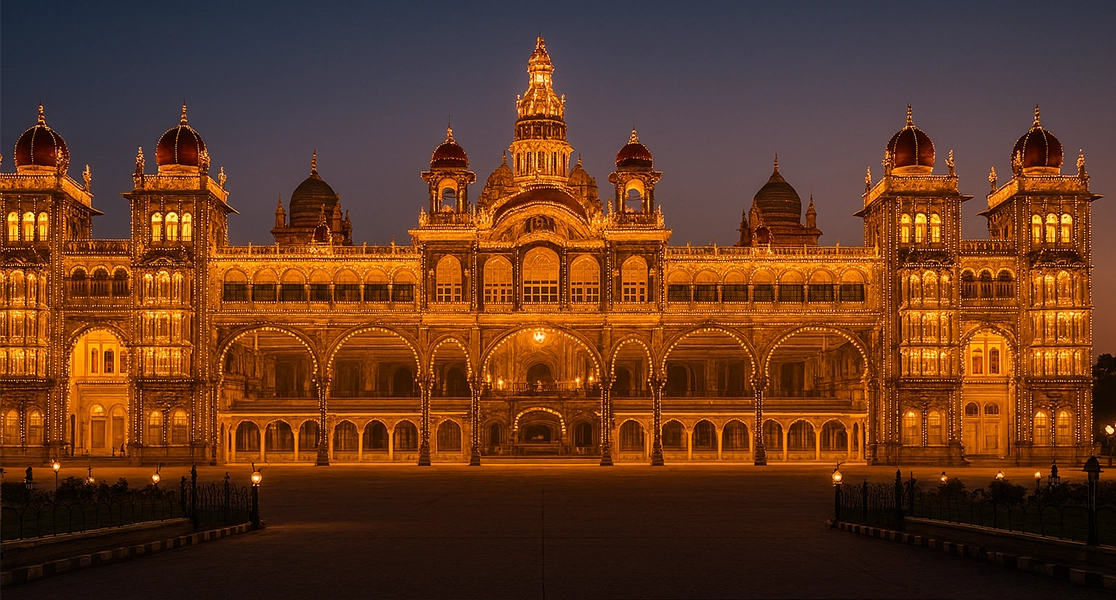 - Visit Mysore Palace, Chamundi Hill, St. Philomena’s Church, and Brindavan Gardens