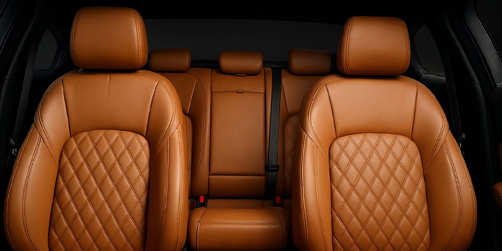 - Premium leather seating with careful stitching and soft surfaces